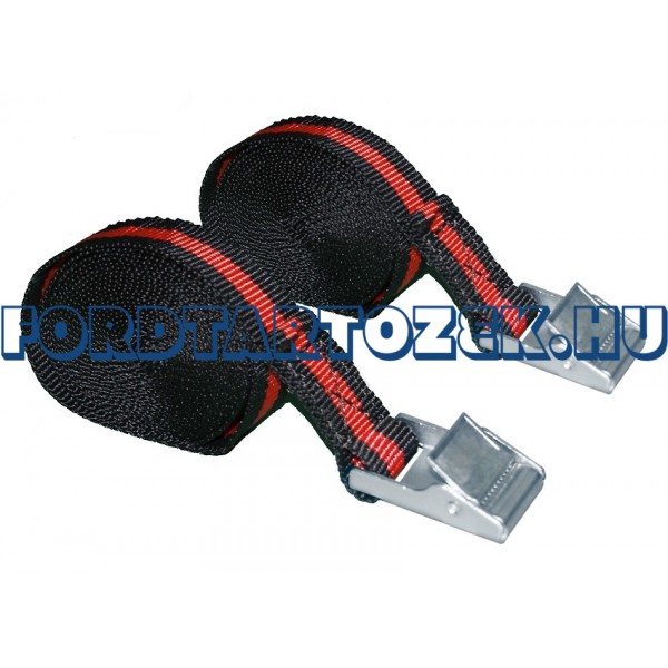 2 darab 2,5 méteres 25 mm széles rakományrögzítő heveder, csatos feszítővel csomagok rögzítéséhez.