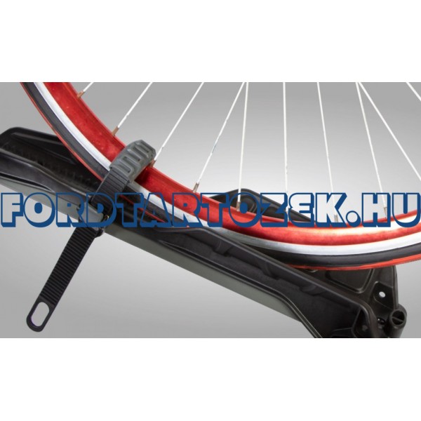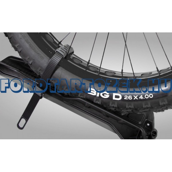 A racsnis hevederek lehetővé teszik a kerekek gyors és biztonságos rögzítését, a hosszú hevederek akár 4” széles gumiabroncsokat is befogadhatnak.