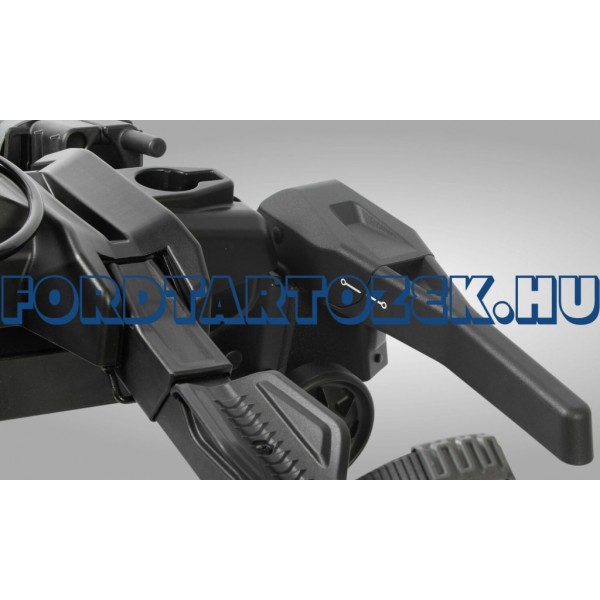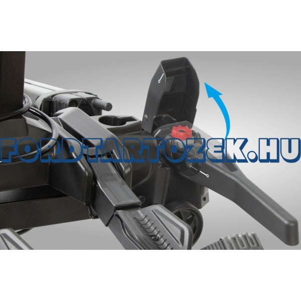 A kerékpárszállító egyszerűen fel- és leszerelhető egy erőkar lenyomásával.