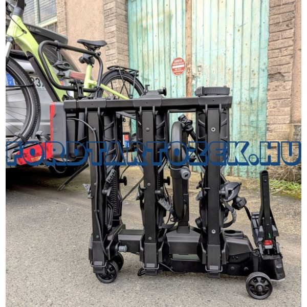 A kerékpártartó kerekekkel van felszerelve, így nem kell cipelni, hanem kényelmesen odaguríthatja az autóhoz.