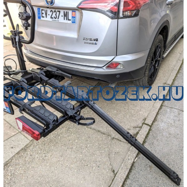 - Gyorsan fel- és leszerelhető, összecsukható kerékpártartó vonóhorogra.