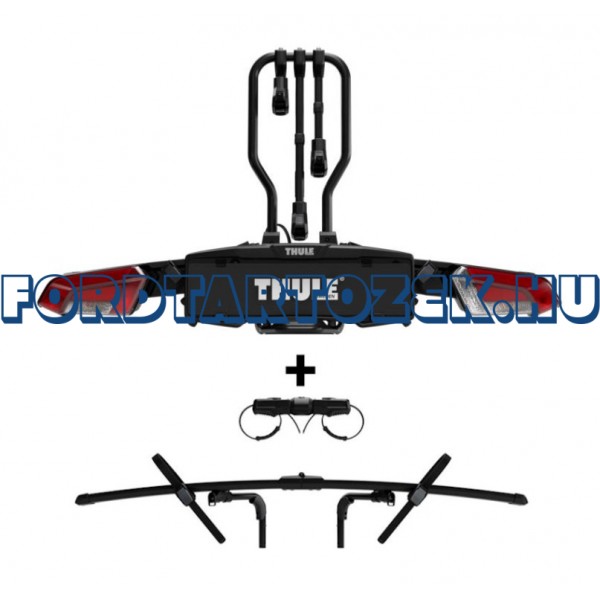 Thule EasyFold 945100 hármas kerékpártartó vonóhorogra, + a negyedik kerékpár szállításához szükséges Thule 944700 adaptert is tartalmazó csomag, mely együttesen 4 kerékpár szállítását teszi lehetővé.